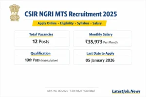 | CSIR NGRI MTS Recruitment 2025: Apply Online for Multi-Tasking Staff Posts, Salary ₹35,973, Eligibility, Syllabus & Complete Guide | |