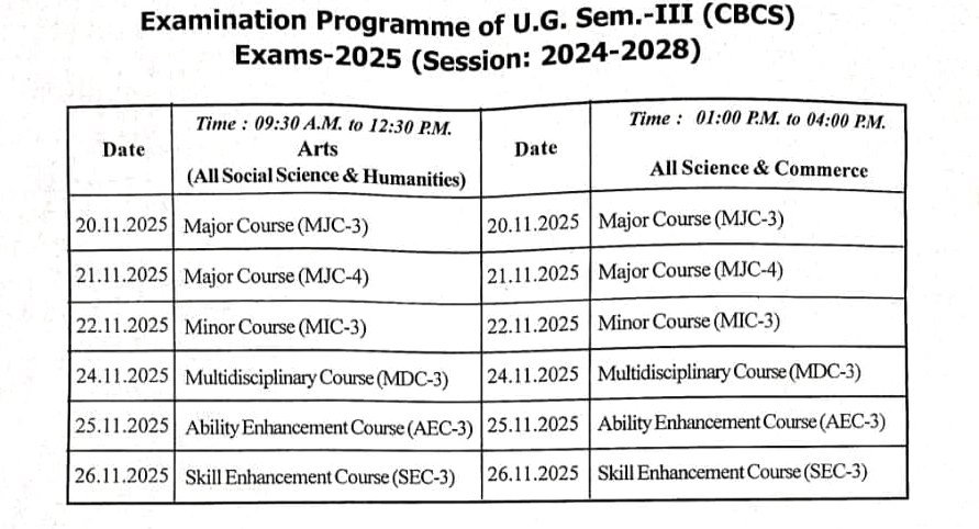 - VKSU Semester 3 Exam Schedule and Admit Card Release